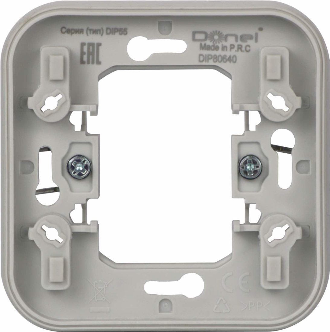 Рамка с крышкой для розетки W55, со шторками, с крышкой, с заземлением, одинарная, винтовые клеммы, цвет - серый