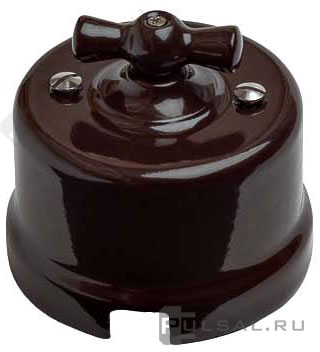 Переключатель Лизетта, одноклавишный, без подсветки, цвет - коричневый