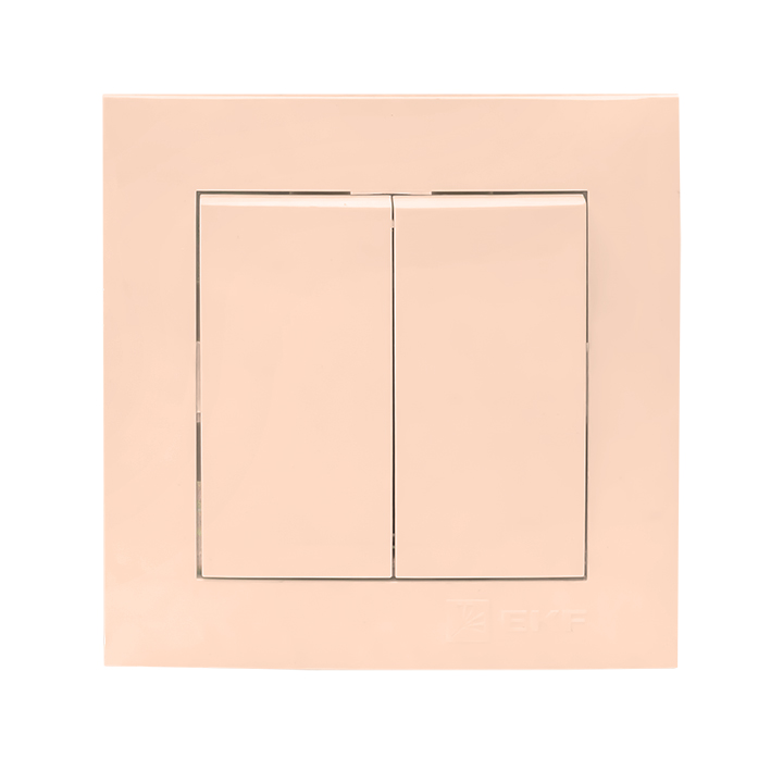 Переключатель Валенсия, двухклавишный, без подсветки, цвет - кремовый