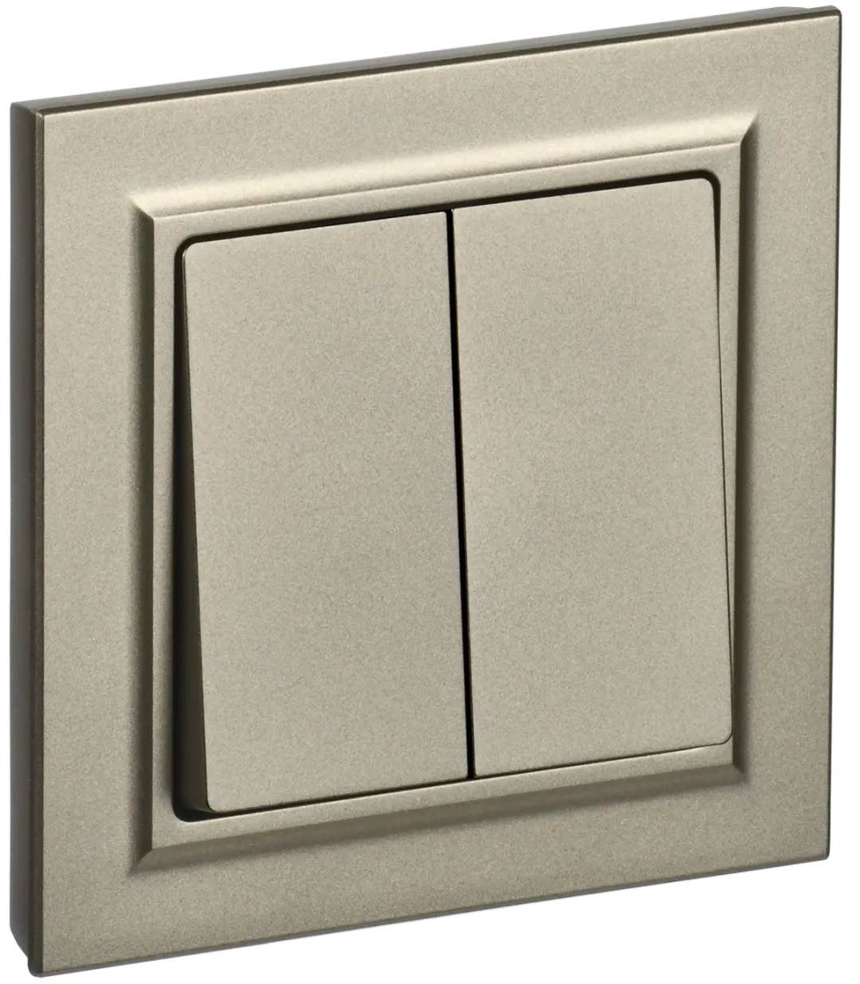 Выключатель с рамкой BRITE, двухклавишный, без подсветки, цвет - шампань