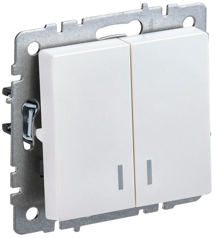Выключатель BRITE, двухклавишный, с подсветкой, цвет - жемчуг