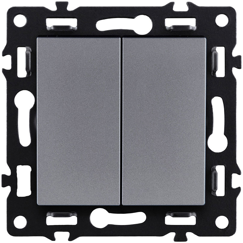 Переключатель Asthetik, двухклавишный, без подсветки, цвет - серый