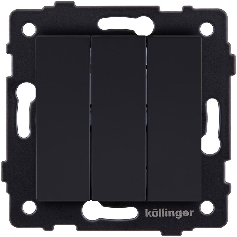 Выключатель Aspekt, Eleganz, Reflex, трехклавишный, без подсветки, цвет - Чёрный матовый