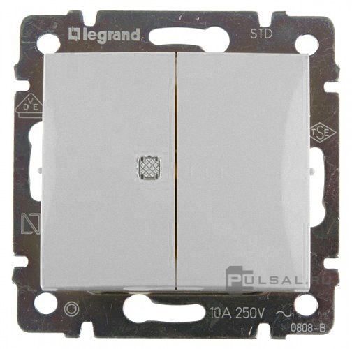 Выключатель Valena, двухклавишный, с индикацией, цвет - алюминий