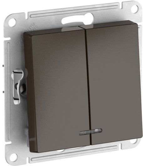 Выключатель (безвинтовые клеммы) Atlas Design Antique, AtlasDesign Air, Atlas Design, двухклавишный, с подсветкой, цвет - мокко