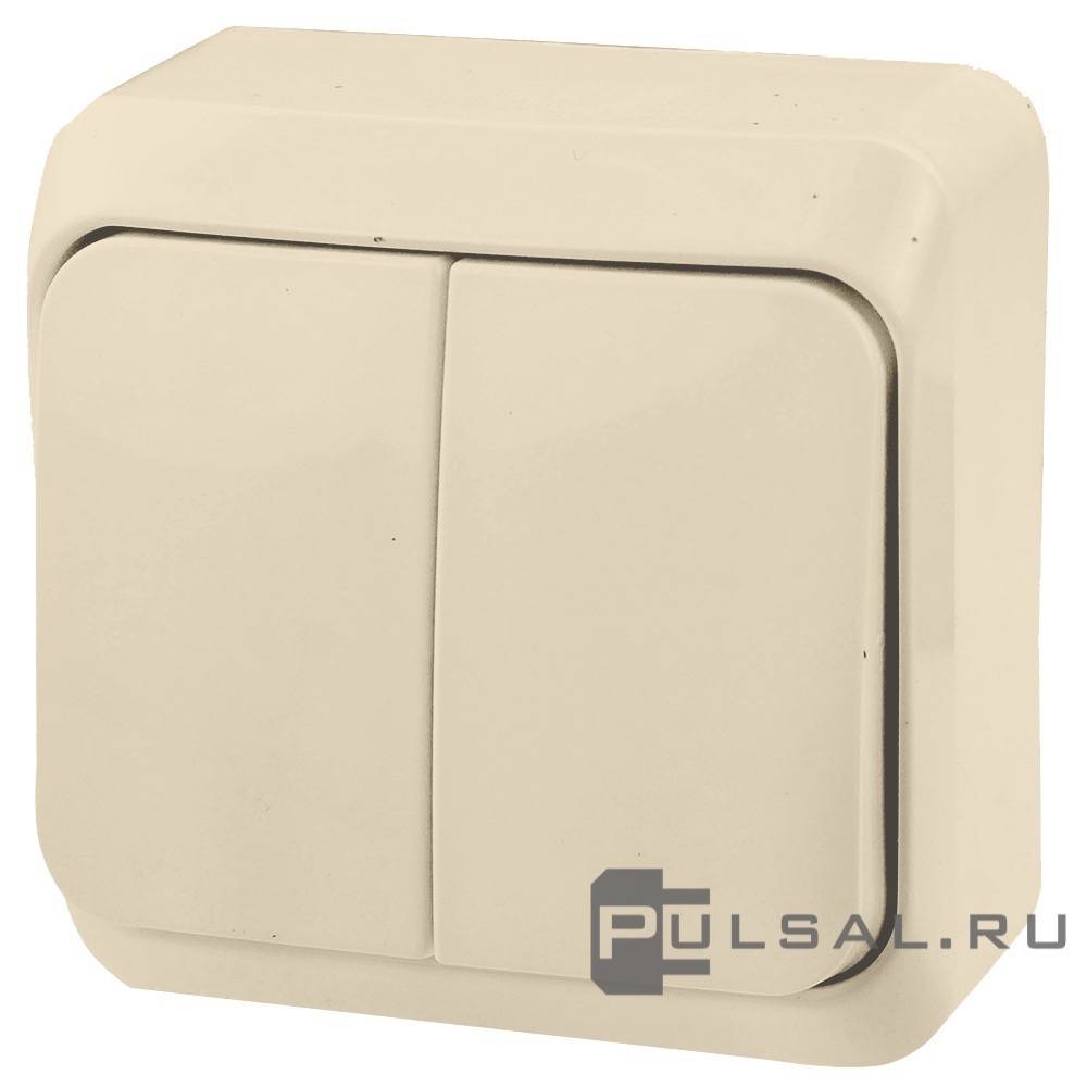 Выключатель с рамкой Этюд, двухклавишный, без подсветки, цвет - кремовый