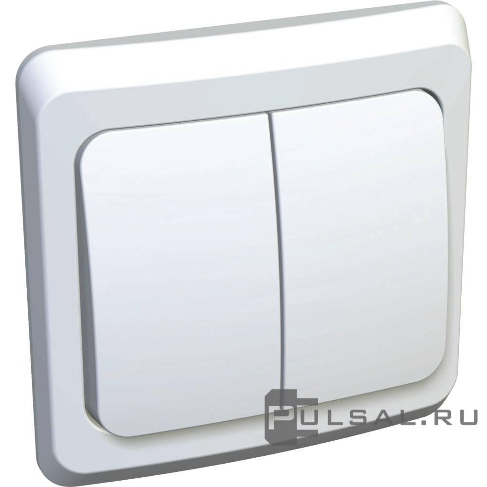 Выключатель с рамкой Этюд, двухклавишный, без подсветки, цвет - белый