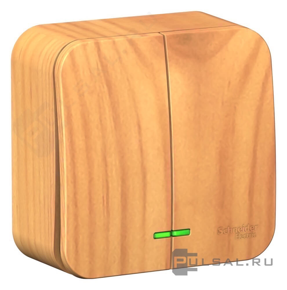 Переключатель 10А, с изолирующей пластиной Blanca, одноклавишный, с подсветкой, цвет - ясень