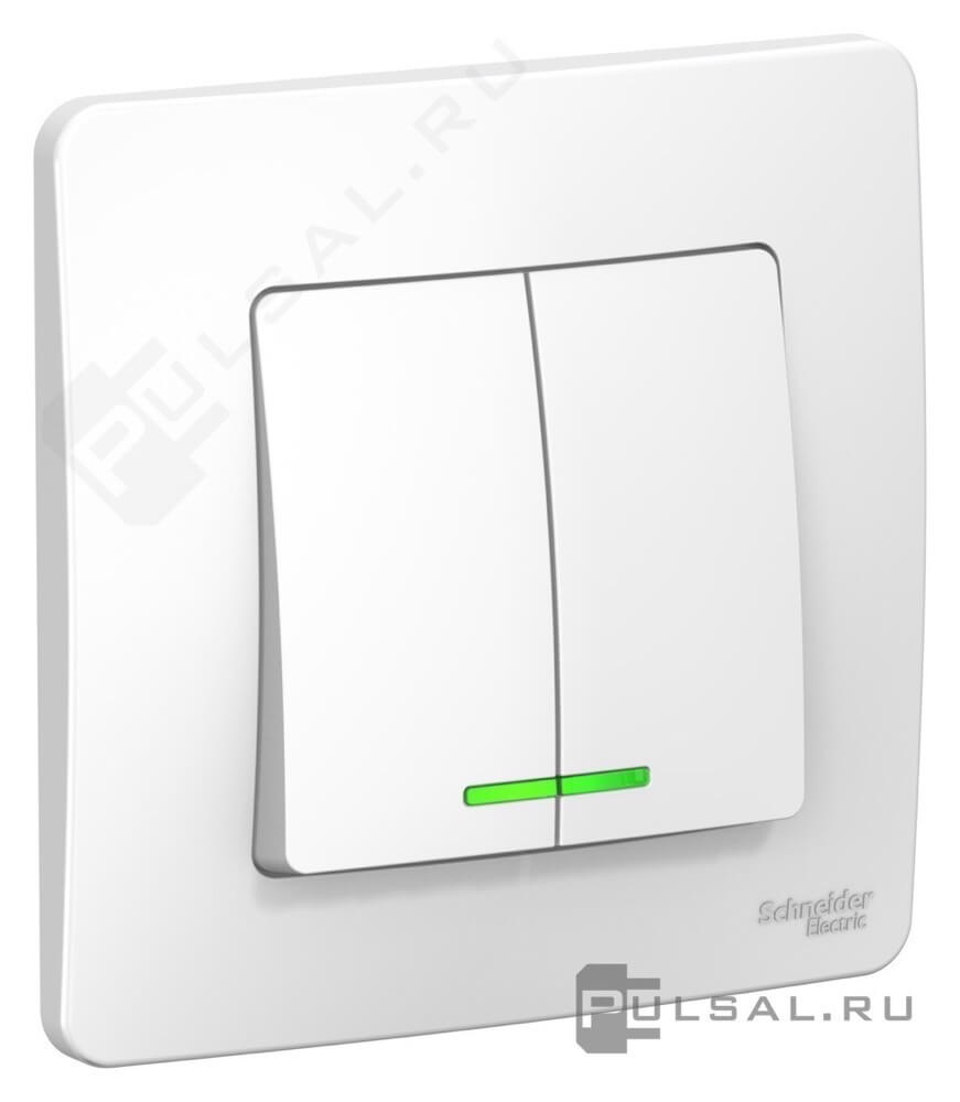 Выключатель 10 А Blanca, двухклавишный, с подсветкой, цвет - белый