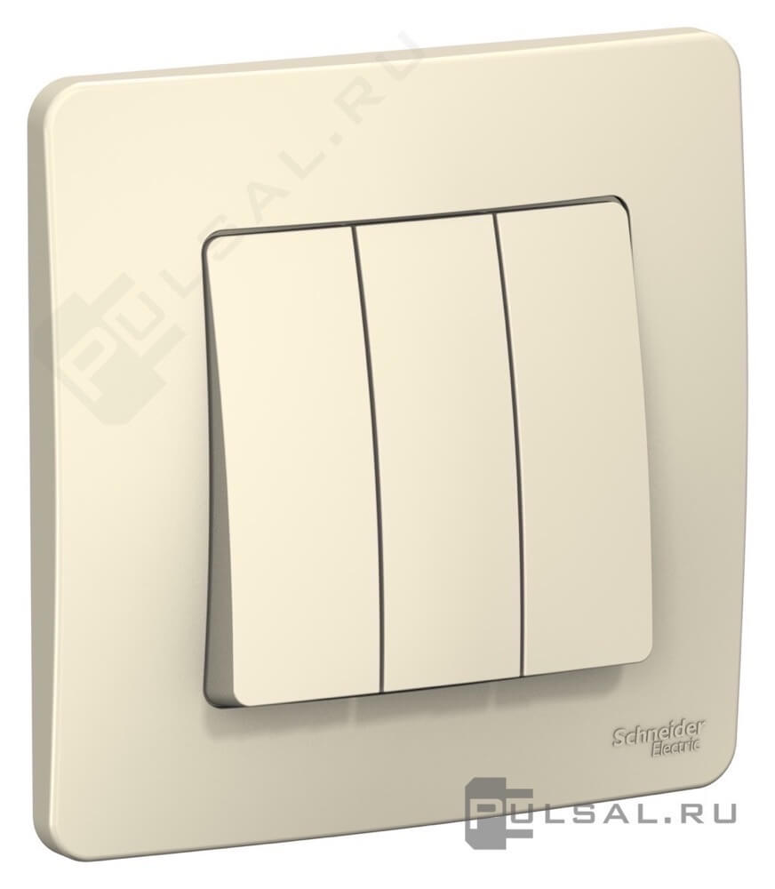 Выключатель 10 А Blanca, трехклавишный, без подсветки, цвет - молочный