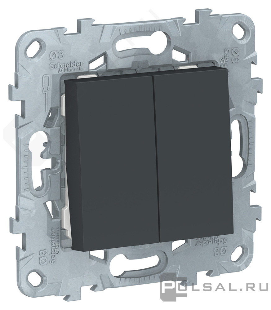 Выключатель Unica New Pure, Unica New Studio, двухклавишный, без подсветки, цвет - антрацит