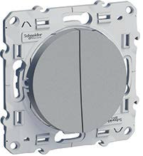 Переключатель Odace, двухклавишный, без подсветки, с возможностью подсветки, цвет - алюминий