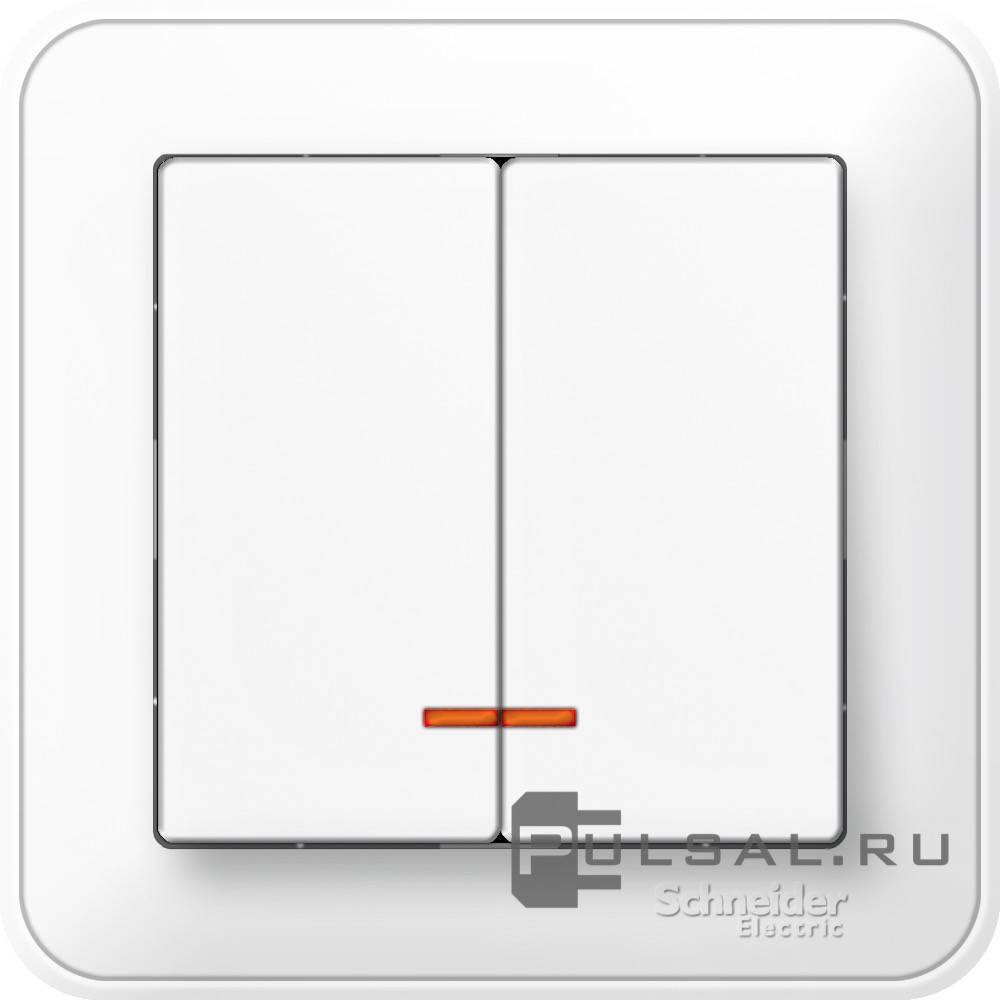 Выключатель с рамкой 10 А W59, двухклавишный, с подсветкой, цвет - белый