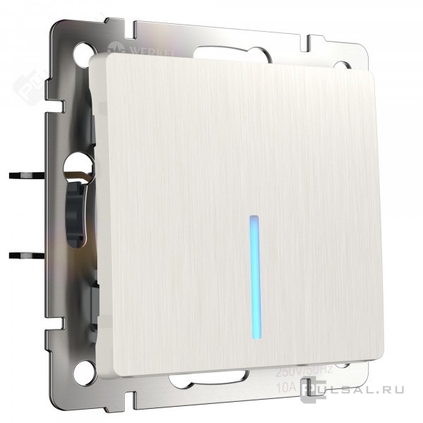 Переключатель Alumax, Split, Slab, Senso, Baguette, Acrylic, Platinum, Elite, Snabb, Stream, Flock, Stark, Fiore, Favorit, Diamant, Aluminium, Antik, Metallic, одноклавишный, с подсветкой, цвет - перламутр рифленый
