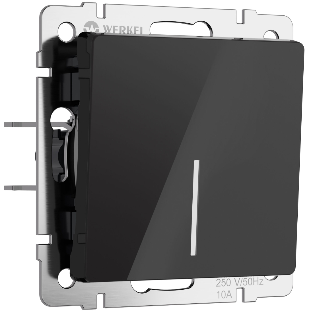 Выключатель Alumax, Split, Slab, Senso, Baguette, Acrylic, Platinum, Elite, Snabb, Stream, Flock, Stark, Fiore, Favorit, Diamant, Aluminium, Antik, Metallic, одноклавишный, с подсветкой, цвет - черный акрил