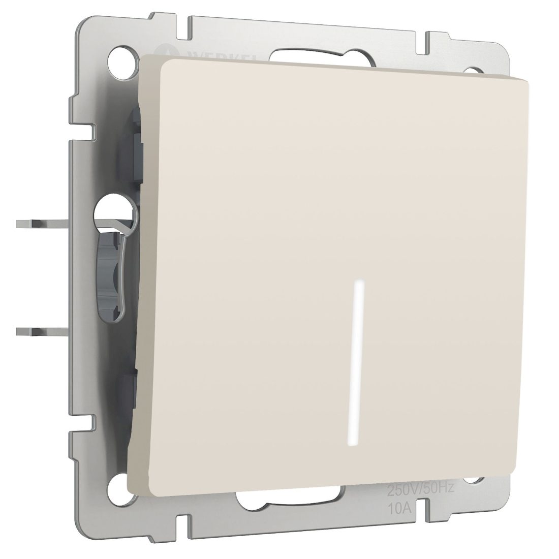 Выключатель Alumax, Split, Slab, Senso, Baguette, Acrylic, Platinum, Elite, Snabb, Stream, Flock, Stark, Fiore, Favorit, Diamant, Aluminium, Antik, Metallic, одноклавишный, с подсветкой, цвет - айвори матовый