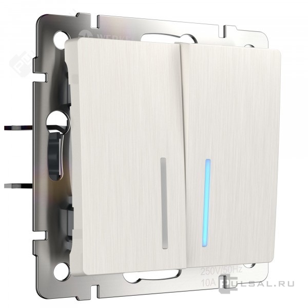 Переключатель Alumax, Split, Slab, Senso, Baguette, Acrylic, Platinum, Elite, Snabb, Stream, Flock, Stark, Fiore, Favorit, Diamant, Aluminium, Antik, Metallic, двухклавишный, без подсветки, цвет - перламутр рифленый