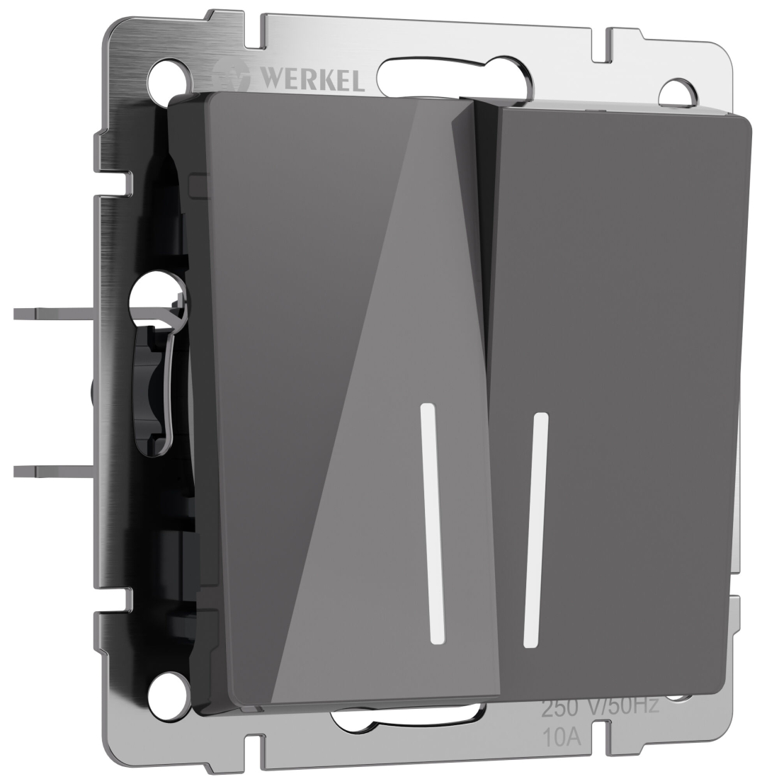 Переключатель Alumax, Split, Slab, Senso, Baguette, Acrylic, Platinum, Elite, Snabb, Stream, Flock, Stark, Fiore, Favorit, Diamant, Aluminium, Antik, Metallic, двухклавишный, с подсветкой, цвет - графит акрил