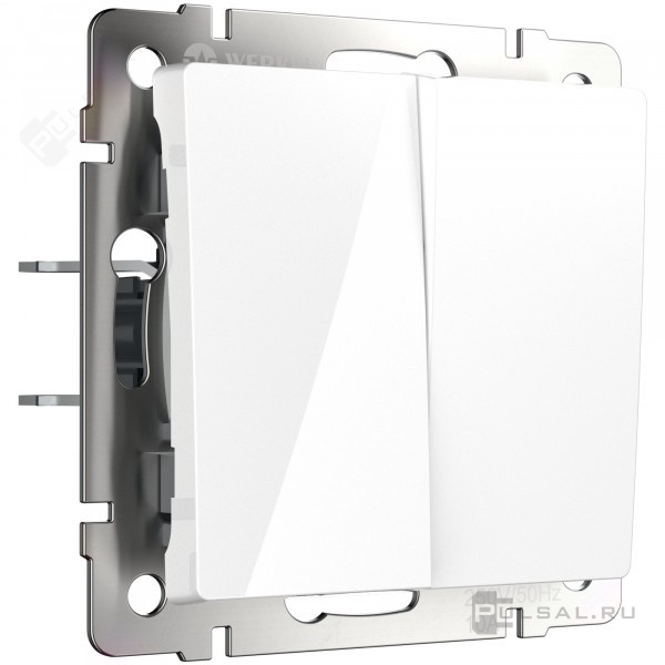 Перекрестный переключатель Alumax, Split, Slab, Senso, Baguette, Acrylic, Platinum, Elite, Snabb, Stream, Flock, Stark, Fiore, Favorit, Diamant, Aluminium, Antik, Metallic, двухклавишный, без подсветки, цвет - белый