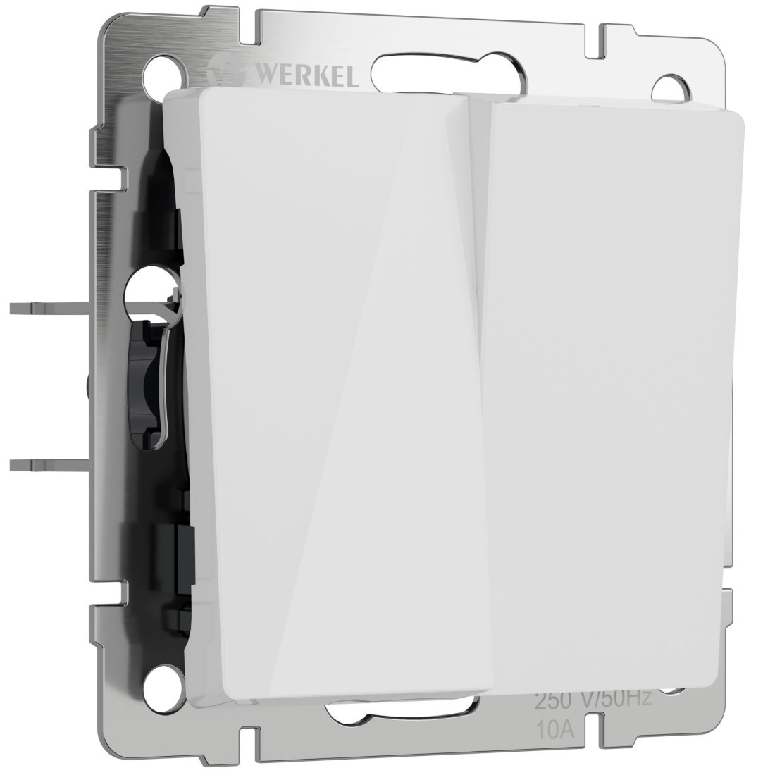 Переключатель Alumax, Split, Slab, Senso, Baguette, Acrylic, Platinum, Elite, Snabb, Stream, Flock, Stark, Fiore, Favorit, Diamant, Aluminium, Antik, Metallic, двухклавишный, без подсветки, цвет - белый акрил