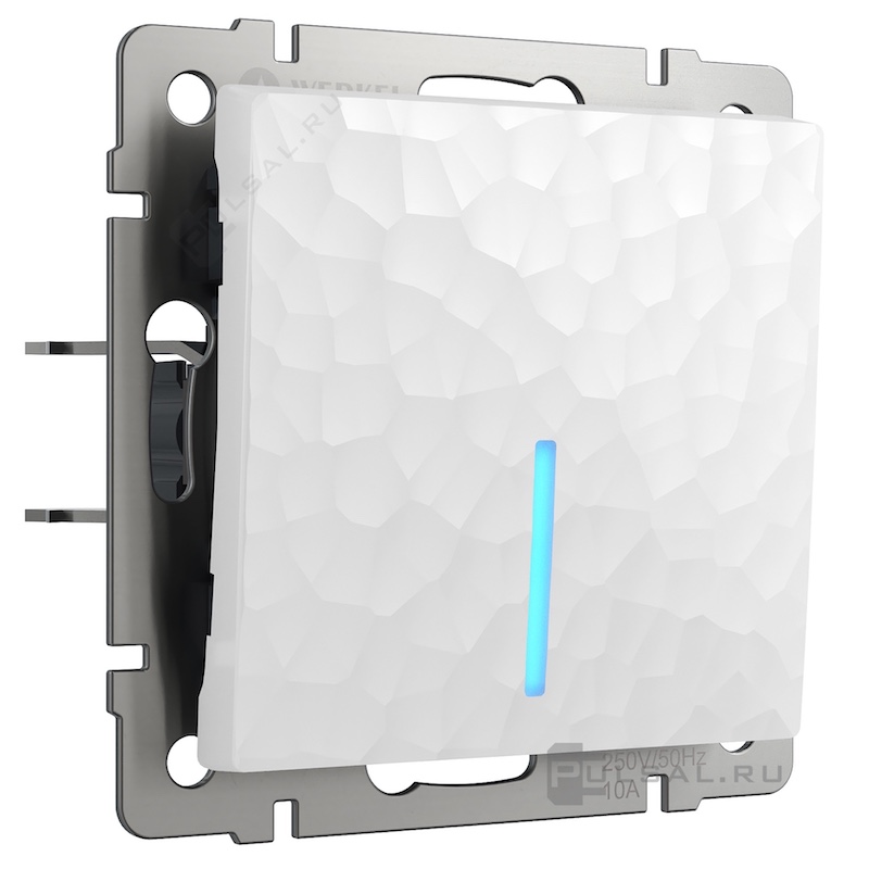 Переключатель Hammer, одноклавишный, с подсветкой, цвет - белый