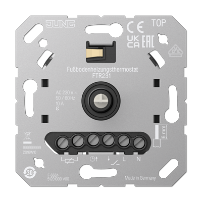 Терморегулятор 10А, НО-контакт, 230В A creation, A 550, A flow, AS 500, CD 500, LS 990, LS plus, LS 990 Les Couleurs Le Corbusier, LS ZERO, LS-design, ECO profi и ECO profi Standart, ECO profi design (ECO Profi Deco), поворотный, датчик t° пола (внешний), без таймера