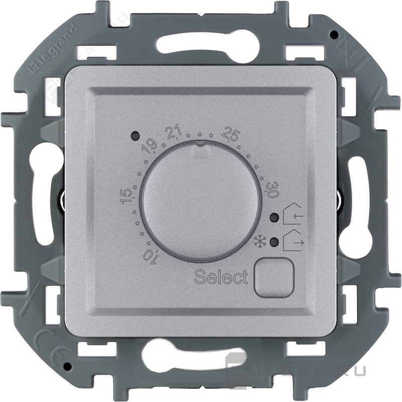 Светорегулятор (диммер) 5-300 Вт/ВА, для LED 5-75 ВА Inspiria, поворотно-нажимной, с возможностью управления с 2-х мест, лампы накаливания и галогенные 220В (R), лампы с индукционным (обмоточным) трансформ.(L), лампы с электронным (емкостным) трансформ.(C), диммируемые лампы LED 220В (LEDi тип L), диммируемые лампы LED 220В (LEDi тип C), цвет - алюминий