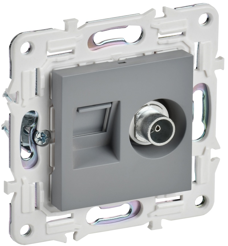 Розетка одиночная TV+RJ45 Skandy, телевизионная (TV), одинарная, цвет - серый