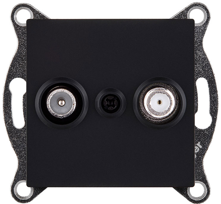 Розетка одиночная TV (тип"мама") +SAT Aspekt, Eleganz, Reflex, телевизионная (TV), двойная, цвет - Чёрный матовый