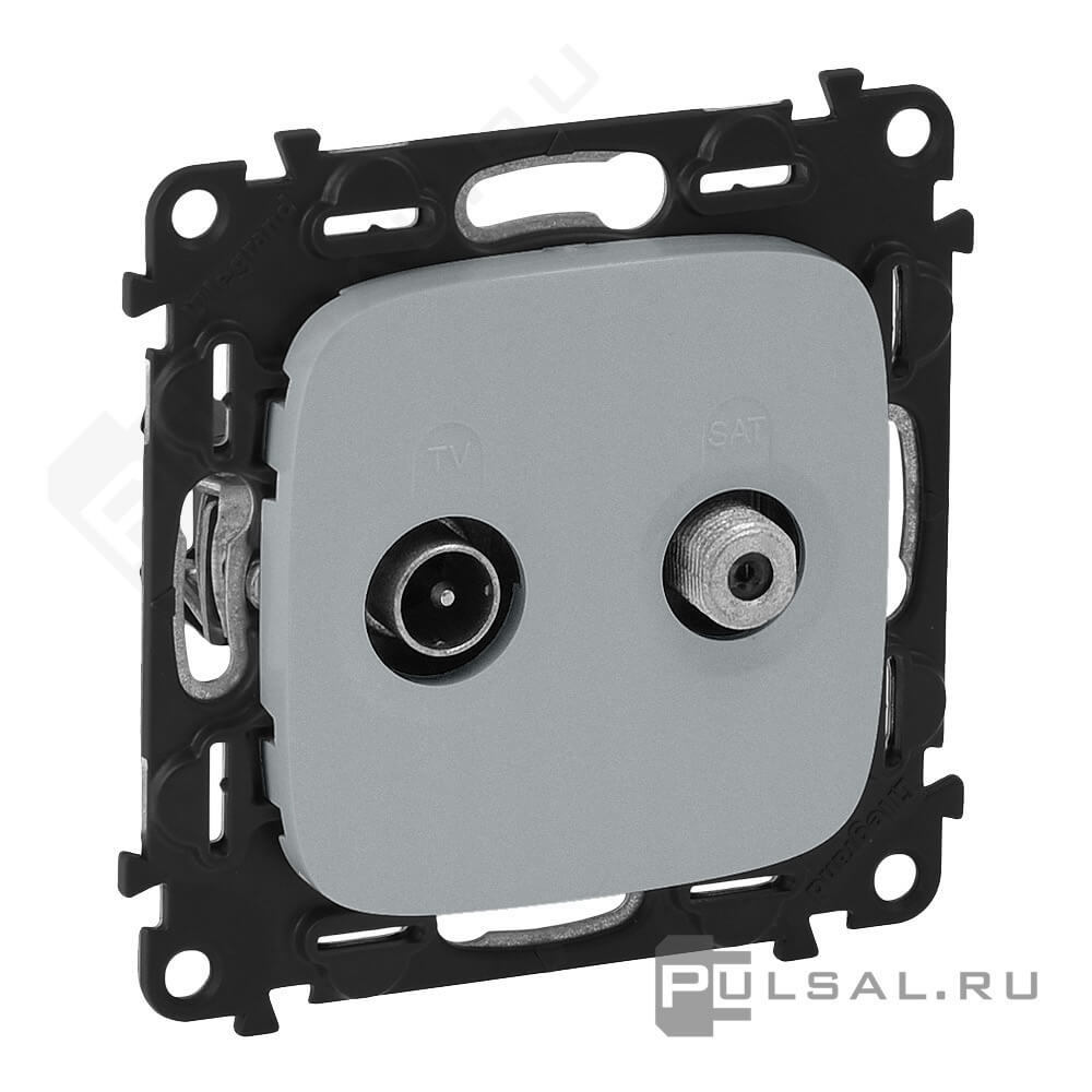 Розетка одиночная двухкабельная Valena Allure, телевизионная (TV), спутниковая (SAT), двойная, цвет - алюминий