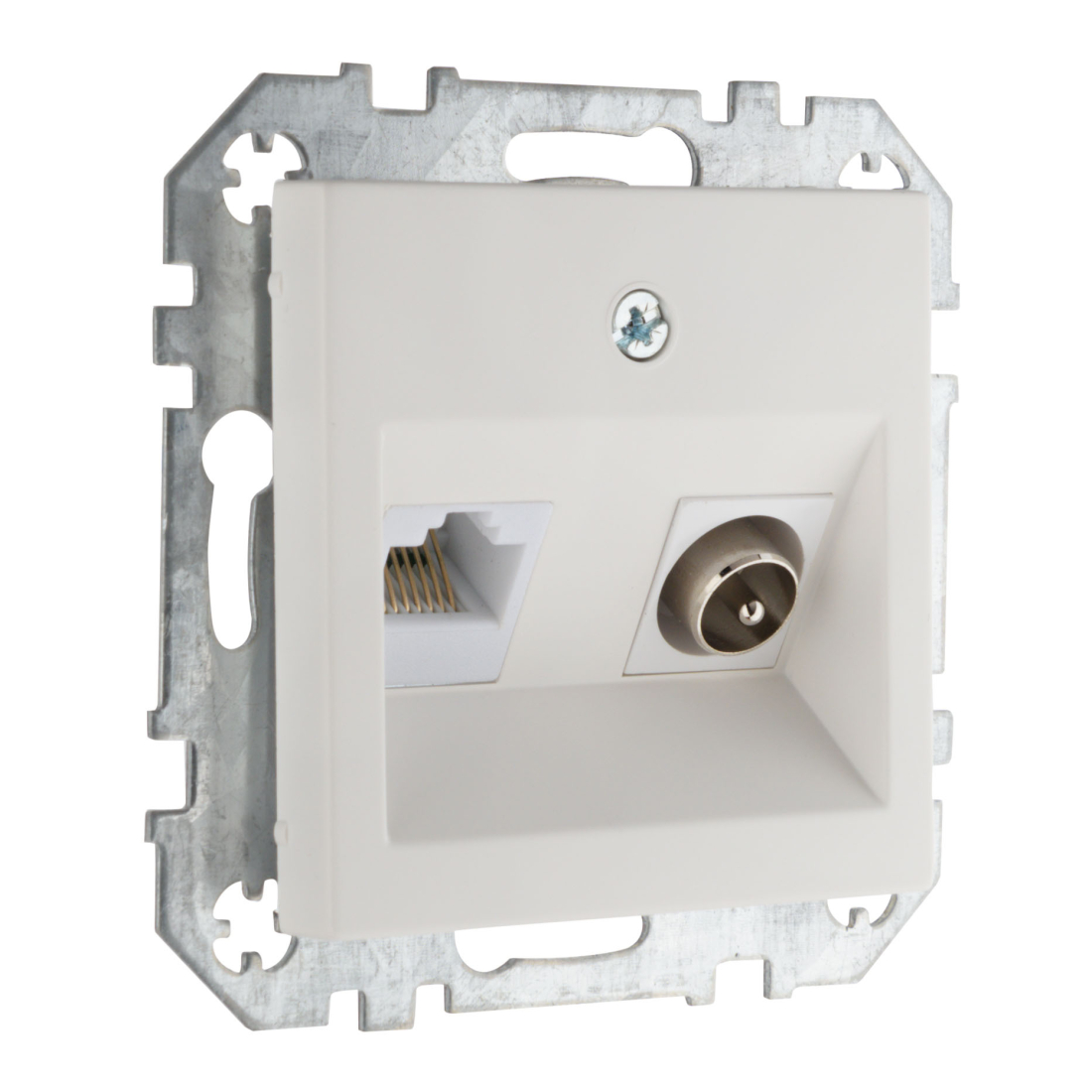 Розетка одиночная TV+RJ45 Epsilon, Retro Liregus, телевизионная (TV), одинарная, цвет - белый матовый