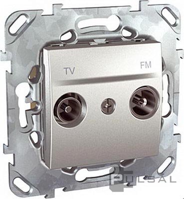 Розетка телефонная RJ12 Unica Quadro, Unica Top, Unica Class, одинарная, цвет - алюминий
