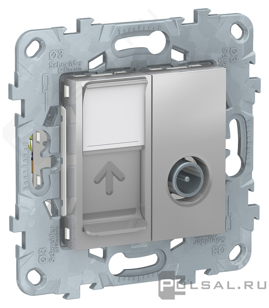 Розетка одиночная TV+RJ45 Unica New Pure, Unica New Studio, телевизионная (TV), одинарная, цвет - алюминий