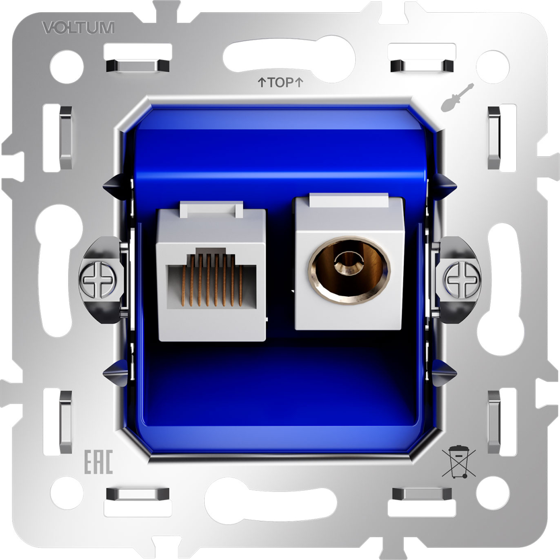 Розетка одиночная TV+RJ45 S70, телевизионная (TV), одинарная, цвет - черный матовый