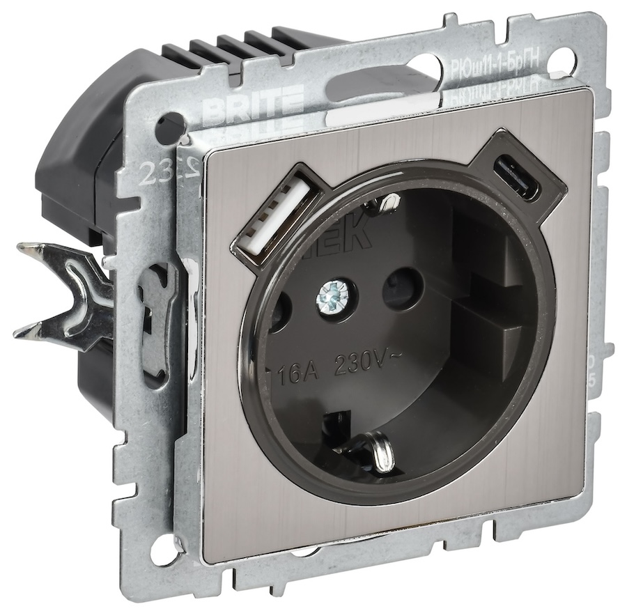 BRITE, USB type-C 5V, USB type-A 5V, двойная, цвет - никель