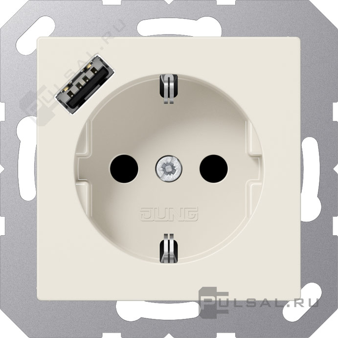 Розетка USB A с электрической розеткой AS 500, USB type-A 5V, Электр. с USB, одинарная, цвет - слоновая кость