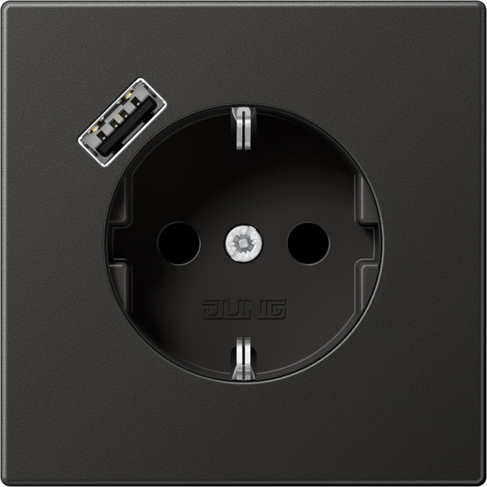 Розетка USB A с электрической розеткой LS 990, LS-design, FD-design, USB type-A 5V, Электр. с USB, одинарная, цвет - антрацит