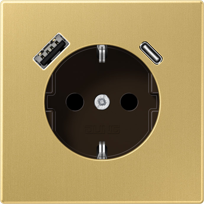 Розетка LS 990, LS 1912, LS ZERO, LS-design, FD-design, со шторками, с заземлением, одинарная, безвинтовые клеммы, цвет - латунь классическая