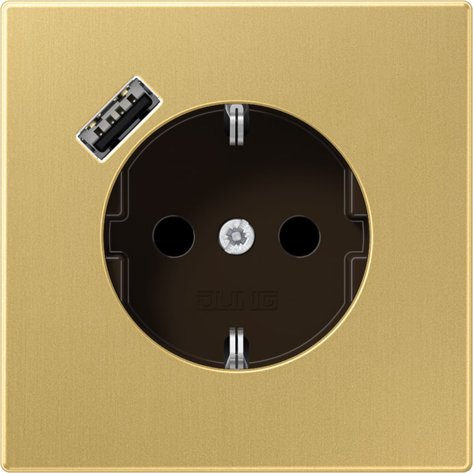 LS 990, LS 1912, LS ZERO, LS-design, FD-design, со шторками, с заземлением, одинарная, безвинтовые клеммы, цвет - латунь классическая