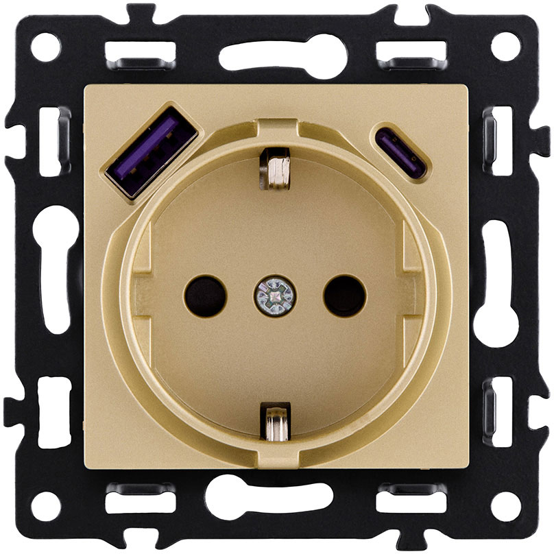 Розетка USB type-C + type-A, 3.0А 65Вт Asthetik, USB type-C 5V, USB type-A 5V, двойная