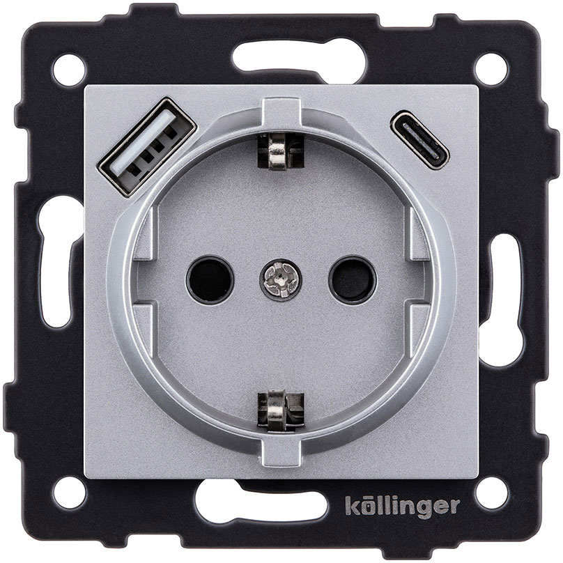 Розетка USB A+C 2.4А с электрической розеткой Aspekt, Eleganz, Reflex, USB type-C 5V, USB type-A 5V, двойная