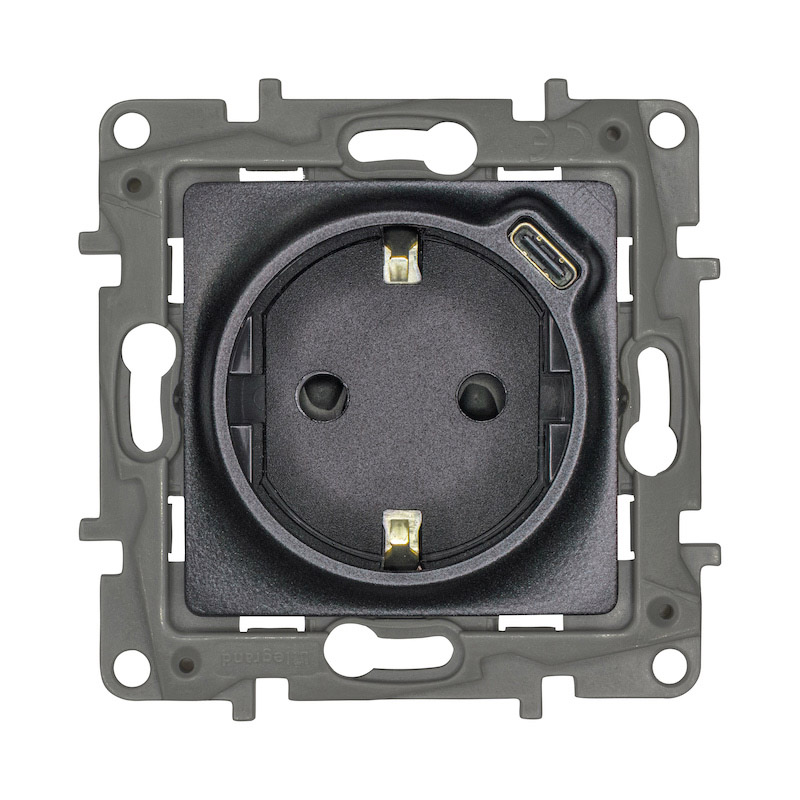 Etika, со шторками, с заземлением, одинарная, винтовые клеммы, цвет - антрацит