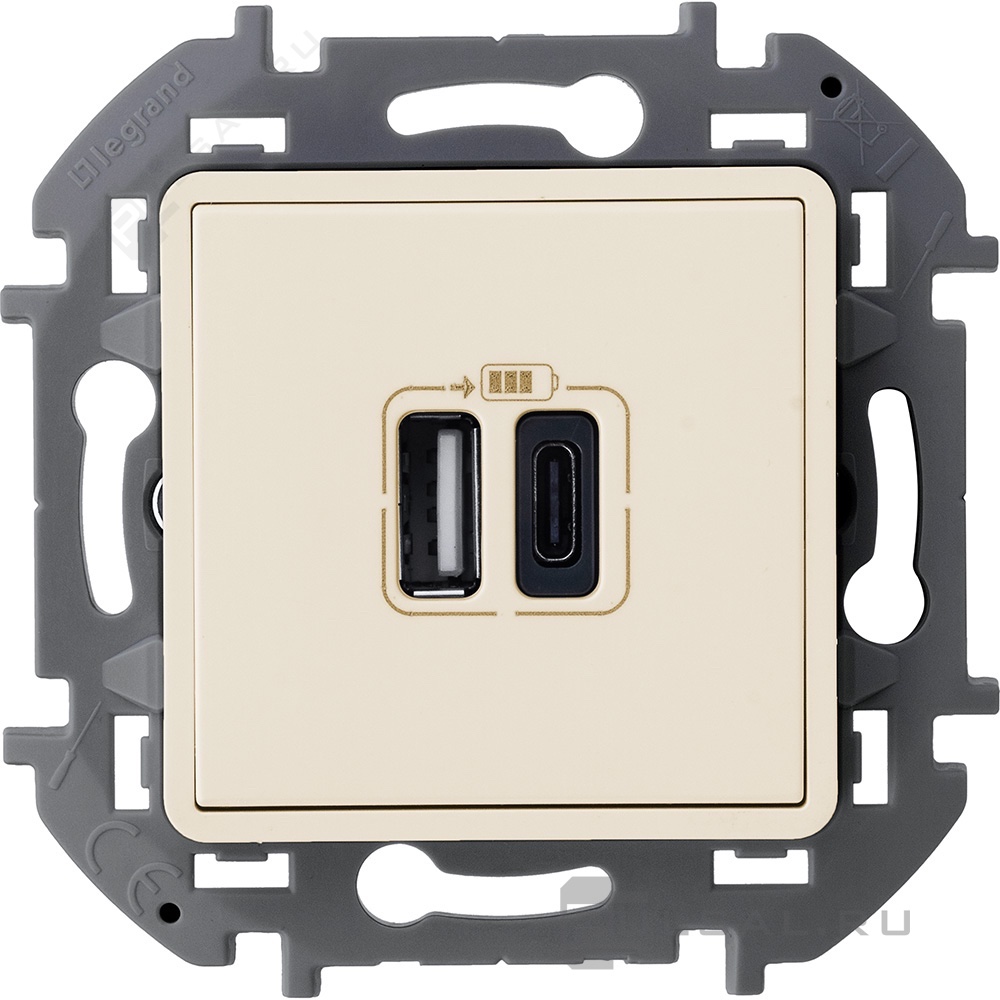Розетка USB type-C + type-A, 3.0А Inspiria, USB type-C 5V, USB type-A 5V, двойная, цвет - слоновая кость