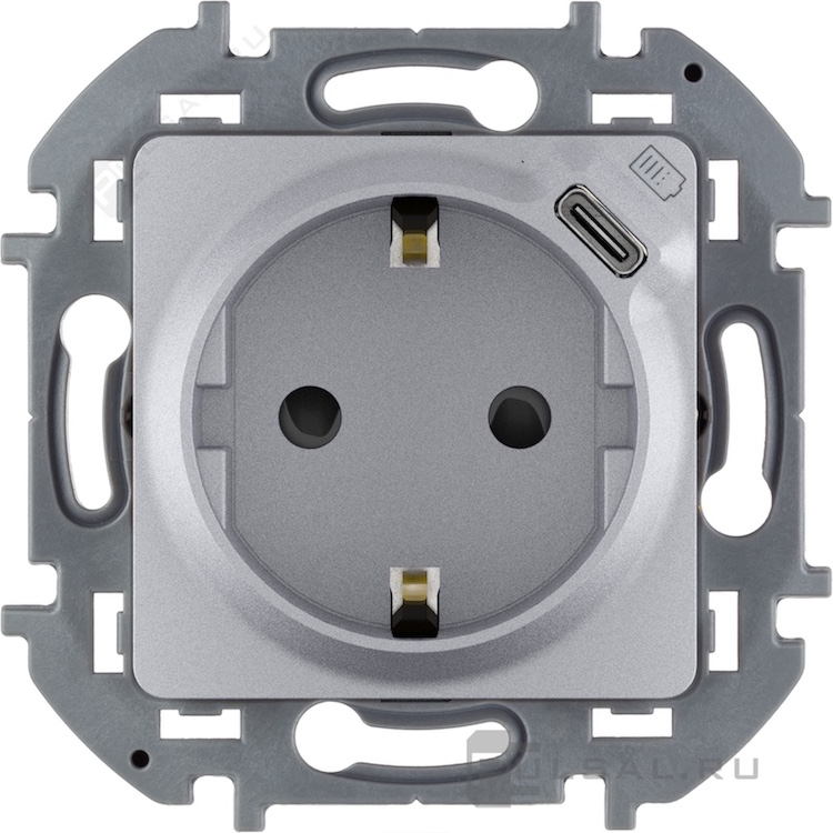 Розетка компьютерная RJ45 Cat.6 (UTP) Inspiria, двойная, цвет - алюминий