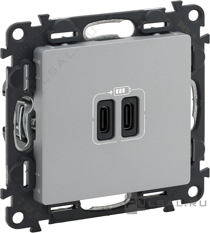 Накладка Valena Life, двухпроводный, трехпроводный, цвет - алюминий