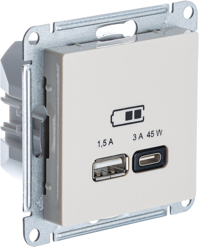 Розетка компьютерная RJ45 Cat.6a (FTP) Atlas Design Antique, AtlasDesign Air, Atlas Design, одинарная, цвет - бежевый
