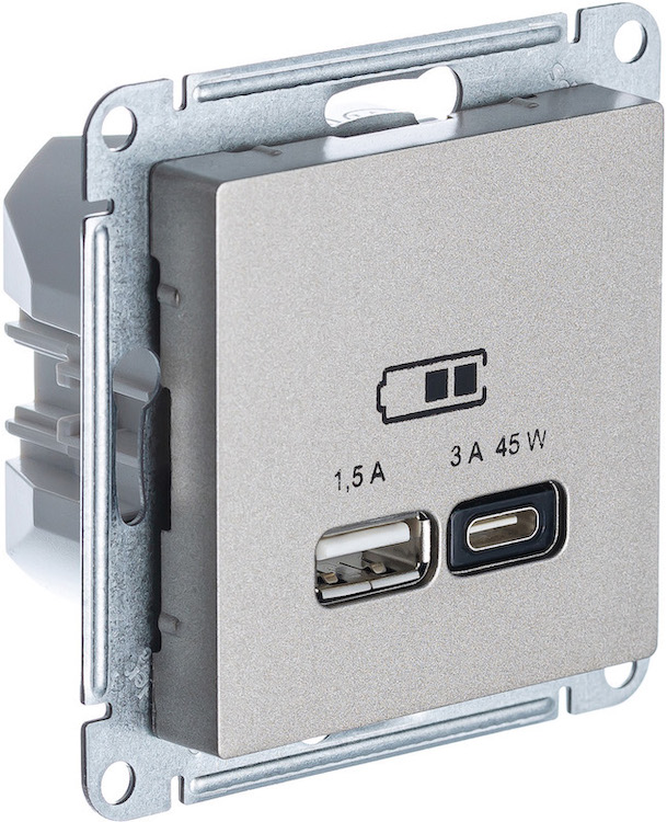 Розетка компьютерная RJ45 Cat.6a (FTP) Atlas Design Antique, AtlasDesign Air, Atlas Design, одинарная, цвет - шампань