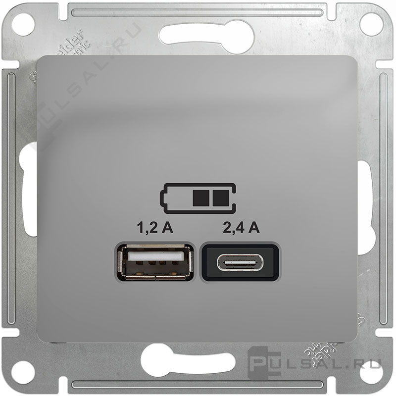 Розетка Glossa, со шторками, с заземлением, одинарная, винтовые клеммы, цвет - алюминий