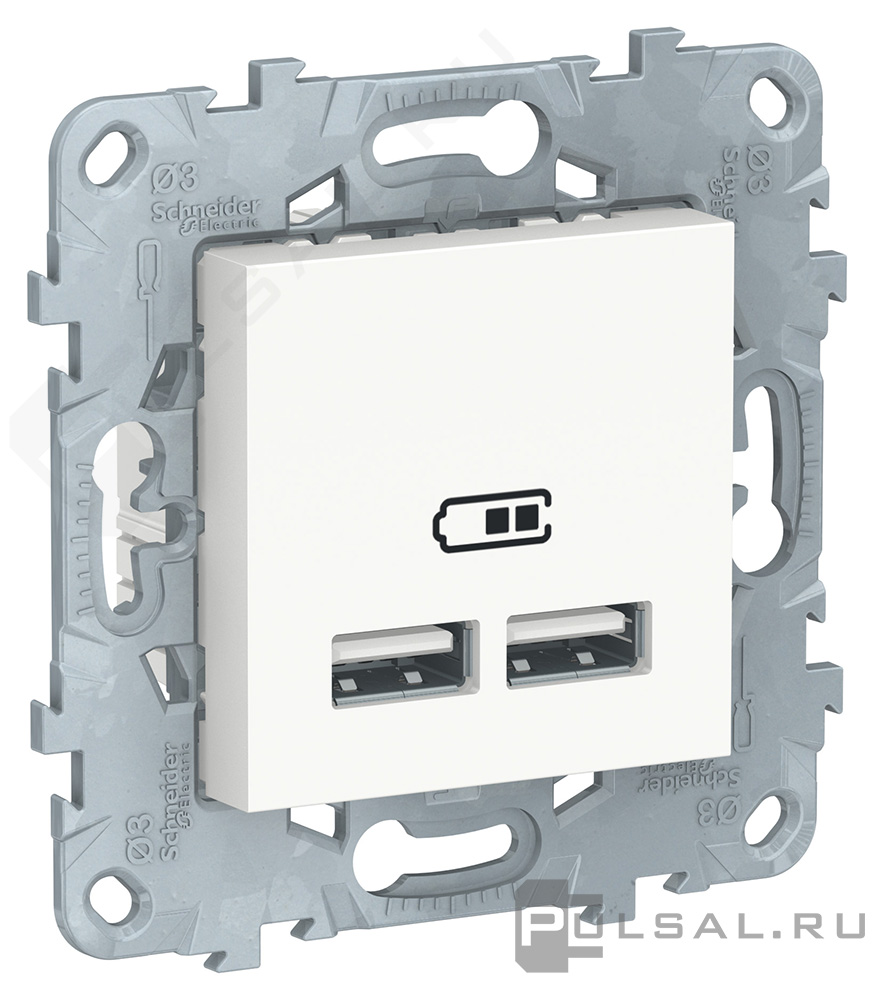Зарядка USB, 2,1А Unica New Pure, Unica New Studio, USB type-A 5V, двойная, цвет - белый