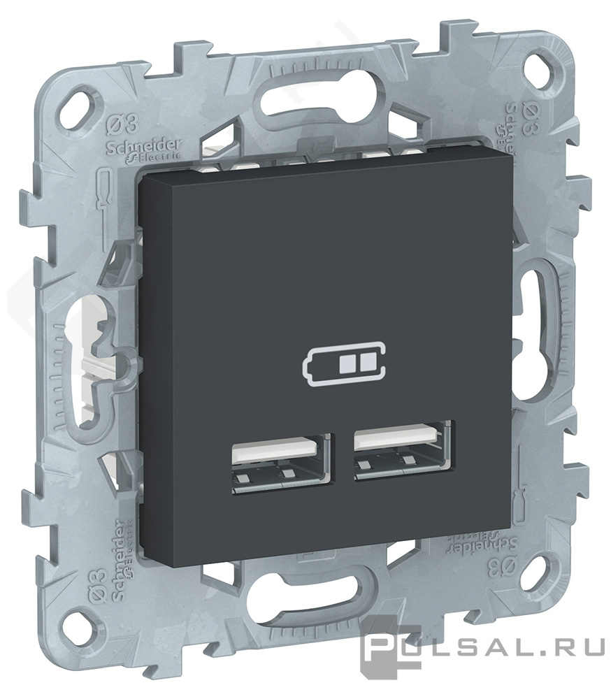 Unica New Pure, Unica New Studio, без шторок, с заземлением, одинарная, безвинтовые клеммы, цвет - антрацит